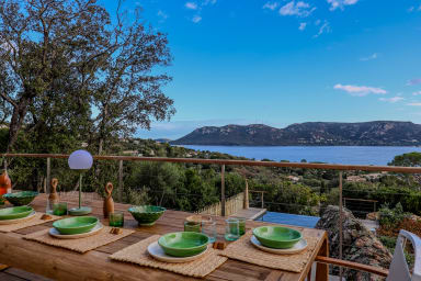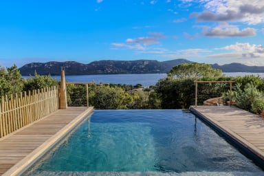 Atemberaubende moderne villa mit 4 Schlafzimmern, Pool und Boccia-Platz mit Blick auf das Meer und die Bucht von Porto-Vecchio.