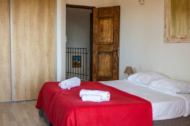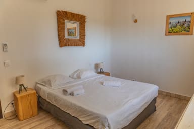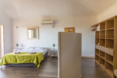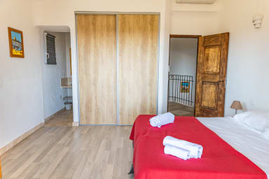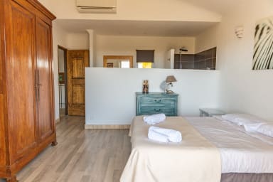 Schlafzimmer 1: Queensize-Bett 160 * 200 mit eigenem Duschbad und wc sowie Zugang zur terrasse und zum Pool.