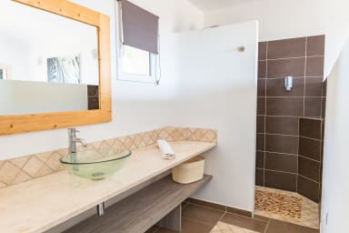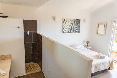 Die villa empfängt Sie mit einer Terrasse, die entweder den Wohnbereich oder den Schlafbereich bedient.