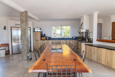 Unter der Laube befindet sich ein Essbereich mit einer Gas-plancha.