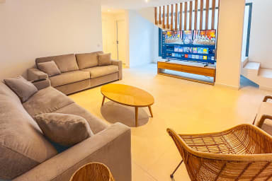 Located just a few minutes walk from the beach of San Ciprianu, in a quiet and green residential setting, this contemporary and spacious villa welcomes you for a stay under the sign of discreet luxury, modern comfort and conviviality.