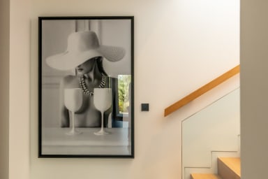 The open interior kitchen offers a modern and refined space with high-end appliances, including, a BORA hob, an oven and a dishwasher in height, as well as an American refrigerator, a thermomix, a cold room and a freezer. An ice maker and built-in Nespresso and Siemens coffee machines complete this set, while an adjoining pantry ensures convenient and organized storage.