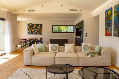 Les voyageurs auront un accès complet et privé à l'ensemble de la villa, à ses espaces extérieurs, à la piscine chauffée et aux installations de loisirs. Le tout dans un environnement calme et sécurisé.