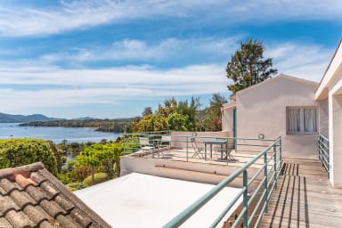 - Vue mer avec piscine chauffée : Profitez d'une vue panoramique sur la mer depuis les nombreuses terrasses et balcons de la villa. Vous pourrez admirer les bateaux qui passent et la beauté naturelle de la Corse. La piscine à débordement 10*5 est sécurisée par une alarme.