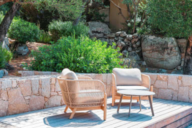 Un coin salon/détente est aménagé au bord de la piscine et des transats sont également mis à disposition.