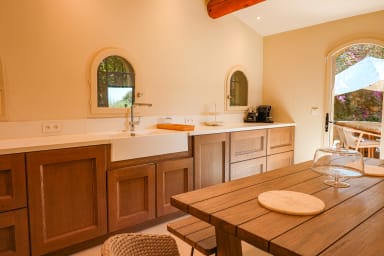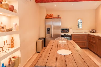 - Cuisine tout équipée avec grande table familiale - frigo, congélateur, micro-ondes, four, presse agrume, cafetière Nespresso, grille-pain.
