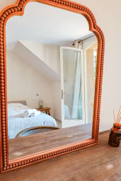 Trois chambres sont situées au rez-de-jardin, une chambre au demi-niveau inférieur et une chambre à l’étage.