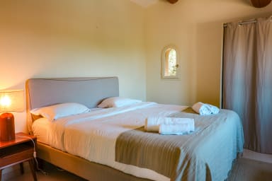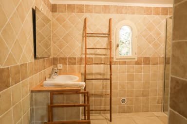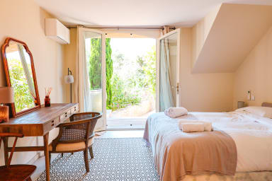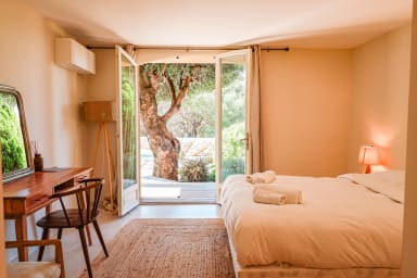 - Chambre 4 : Lit Queen Size (160200) avec salle de douche, WC et dressing. Accès piscine et terrasse.