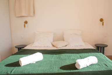 - Une grande chambre modulable ( deux lits 90200 avec possibilité de les rapprocher pour former un lit King Size ) et un lit simple avec tiroir offrant deux lits 80*190, un coin canapé et avec accès au jardin pour plus d'indépendance.