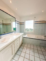 La villa possède un beau jardin paysagé arboré d’arbres fruitiers et de plantes endémiques ainsi qu’une grande piscine très calme de 10*5 située en bas du jardin entièrement sécurisée avec filets de sécurité et alarme si nécessaire et une douche.