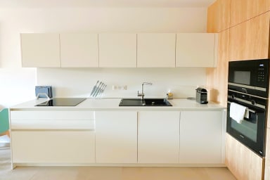 L’appartement est situé dans une résidence récemment construite, le vis-à-vis avec le voisinage est possible en attendant que l’aménagement paysagé soit terminé.