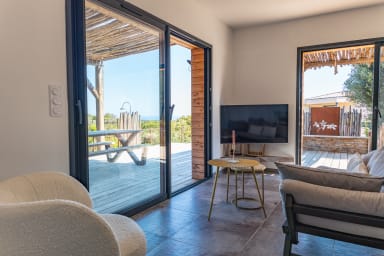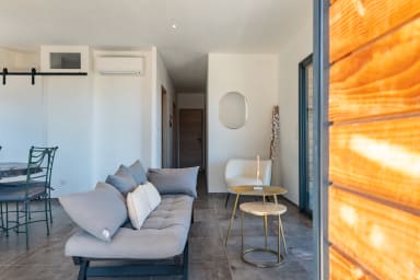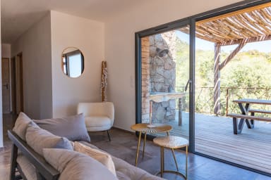 Bienvenue à la Casetta Aria Mezzana, une jolie villa style bergerie, située à Conca, dans un quartier résidentiel à seulement quelques minutes des plages et des sentiers corses. Cette villa de 70 m² allie le charme rustique corse à tout le confort moderne. Idéale pour un séjour en famille ou entre amis, elle peut accueillir jusqu’à 6 personnes.