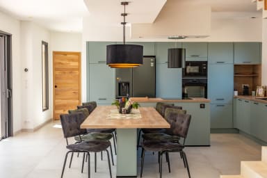 - Toilette invitée Le WIFI est disponible . La villa est entièrement climatisée. La villa est équipée de tout le confort moderne: WIFI gratuit, climatisation intégrale, lave-vaisselle, lave-linge, sèche-linge, plaques à induction, fours, 2 réfrigérateurs-congélateurs, cafetières, bouilloire, centrale vapeur, etc. Le linge de maison, les serviettes de toilette, les lits faits à l'arrivée et le ménage de fin de séjour sont inclus.