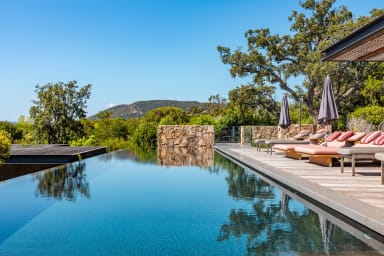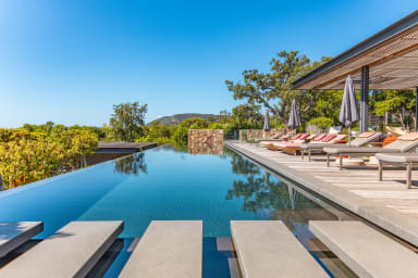 À l’extérieur, une piscine chauffée à débordement de 20 x 5 mètres, au sel et sécurisée par un volet électrique, vous attend. Le jardin paysager clos comprend un putting-green, un terrain de football, un terrain de pétanque, une table de ping-pong, ainsi qu’un barbecue et une plancha pour vos repas en plein air.