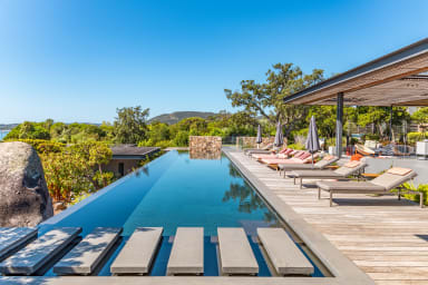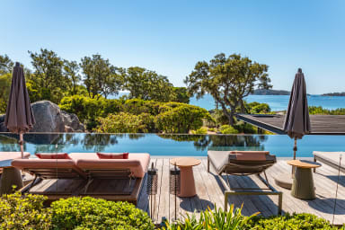 Découvrez une villa d’exception pieds dans l’eau à louer en Corse du Sud, située au cœur du prestigieux Domaine Arinella à Pinarello. Nichée dans un environnement naturel préservé, cette propriété de 800 m² habitables sur un terrain clos de 7.500 m² offre un cadre idyllique pour des vacances haut de gamme en famille ou entre amis.