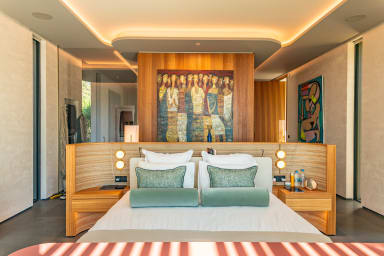Conçue pour accueillir jusqu’à 14 personnes, la villa dispose de 7 suites spacieuses avec salles de bain privatives, toutes équipées de literie haut de gamme, coffre-fort, télévision et climatisation intégrale. Les suites « Sea Front » bénéficient d’une vue mer panoramique à couper le souffle.