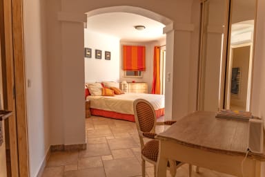 - Suite 1 : Lit Queen Size (160200) avec salle de bain et WC.