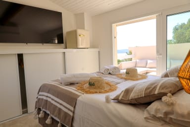 Chambre 1 : lit en 160200 avec télévision. Terrasse face a la mer.