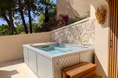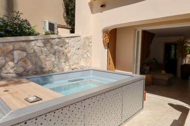 A l'extérieur se trouve une bassin à remous chauffée 2.80m*1.80m