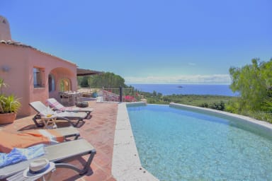 Cette villa offre un cadre unique entre mer et nature. D’un côté, un patio aux accents exotiques invite à la détente ; de l’autre, une superbe terrasse avec piscine chauffée (8.50*4.50) à débordement équipée de 8 bains de soleil et d'une voile d'ombrage, dévoile une vue panoramique sur la mer, les îlots, la baie et, au loin, la Sardaigne ainsi que l’archipel de la Madalena. Le jardin, aménagé sur plusieurs niveaux, crée de beaux espaces de promenade et de contemplation. Une yourte abrite une grande chambre, pour le plus grand bonheur des enfants et des amateurs d’évasion. Un lieu rare, idéal pour vivre des moments inoubliables face à l’horizon sans vis à vis. Jardin majoritairement clôturé. La piscine équipée d'une alarme et une clôture filet.