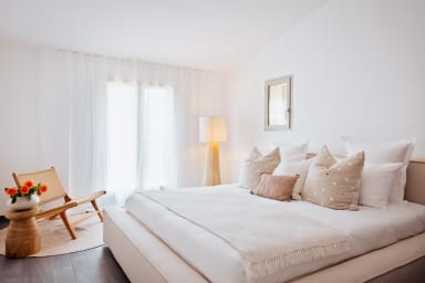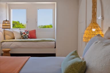 La villa accueille jusqu’à 8 personnes avec ses 4 chambres lumineuses, complétées par 3 salles d’eau avec WC ainsi qu’un WC indépendant. Les chambres sont climatisées avec une télévision et un coffre fort dans chaque. Les volets des chambres sont en bois.