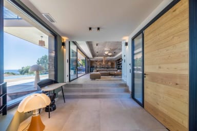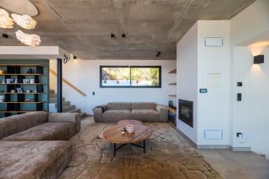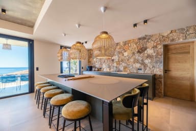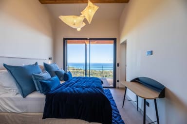 Au rez-de-chaussée, vous trouverez le garage avec accès direct à la villa ainsi qu’un dortoir. Au premier niveau, la pièce de vie s’ouvre sur deux terrasses donnant accès à la piscine et à la cuisine extérieure. L’espace salon – séjour, baigné de lumière naturelle, communique avec une cuisine intérieure entièrement équipée et aménagée (machine à café à grains Delonghi, mixeur, presse-agrumes, toaster, etc.), idéale pour préparer et partager de délicieux repas. Depuis le séjour, vous accédez au salon prolongé par la terrasse offrant une vue spectaculaire sur la mer. La villa dispose également de quatre suites élégantes et spacieuses. Deux d’entre elles, situées au deuxième niveau, sont équipées de lits king size (180 × 200), tandis que les deux autres, situées au premier niveau, proposent des lits queen size (160 × 200). Chaque suite bénéficie d’une télévision ainsi que de sa salle d’eau privative avec WC.Tout le nécessaire pour votre séjour est mis à disposition : linge de maison, draps et serviettes.