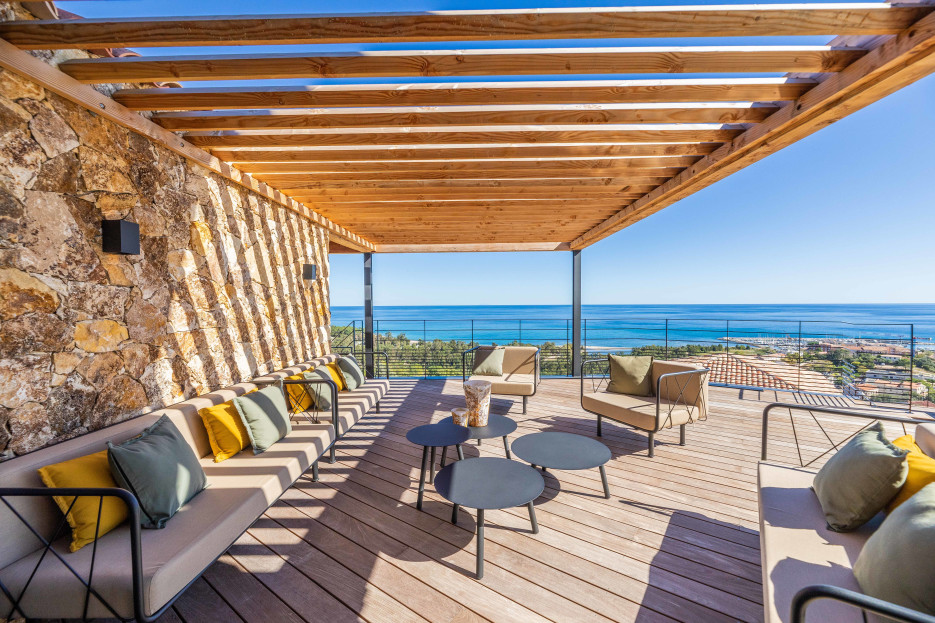 Sur les hauteurs de Solenzara, la villa offre une vue panoramique à couper le souffle sur la mer. Laissez-vous séduire par des moments de détente absolue, allongé sur des bains de soleil ou des beds, profitant pleinement du soleil corse au bord de la piscine à débordement (11 x 3,5 m), équipée d’un système de sécurité. La terrasse accueille une élégante cuisine extérieure de marque FOGHER, aménagée en L et parfaitement équipée : plan de travail, rangements, barbecue au gaz et plancha, idéale pour savourer déjeuners et soirées en plein air dans une atmosphère conviviale.